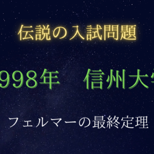 “誰もが入試史上最難問と認める問題がある.東大が本気を出していた97~98年にその問題は現れた.数学オリンピックに出題されても解ける人はいないだろうと言われたその問題は1998年東京大学後期数学第3問.長いので問題文は省略するが,ネットでもそこらじゅうに転がっているので,一度見てみるといい.