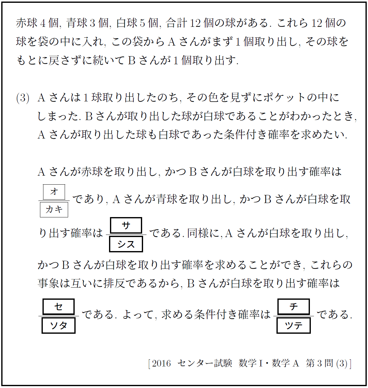 条件付き確率を理解しておかなければ、今やセンター試験にすら通用しない。