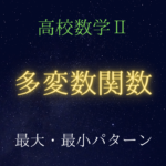 一般の同次式には,\ 基本的な扱いがある. 同次式は,\ 比の置換によって,\ 1変数関数に帰着する. まず,\ 比の形にするために,\ 一方の文字の最高次の項で割ることになる. tの実数存在条件 1文字消去法などの基本的な解法は難しい. {=k\ とおいて,\ とを満たすx,\ yの実数存在条件を考える(逆像法).} {2つの式から定数部分を消去}することで,\ {2次同次式}\ ()となる. まず,\ 両辺をyで割る前に,\ y=0の場合を分けておく. y0のとき,\ {両辺をy²\ で割り,\ xy=t\ とおくと,\ 1変数に帰着する.} 実数tが存在すれば,\ t= xy\ より,\ 対応する実数x,\ yが存在する. よって,\ {実数tが存在するようkを定める.} tの2次式なので,\ {判別式}により,\ kのとりうる値の範囲が定まる. ここで,\ 「かつ」「かつ」より,\ から求まるkの値は必要条件である. かつを満たす実数x,\ yを実際に求めて十分性を示す. kが最大・最小をとるのは,\ D=0のときである. よって,\ tの値は,\ 重解\ t=-{-8k}{2(4k-1)}={4k}{4k-1}\ として求められる. (∵\ ax²+bx+c=0\ において,\ 重解\ x=- {b}{2a}) {(相加平均)(相乗平均)}{t=2のとき等号が成立}する.$ {分母分子がいずれも2次同次式の分数}であり,\ この場合も比の置換に持ち込める. 分母分子をx²\ で割ると,\ tの1変数関数に帰着する. 置換した文字\ t= yx\ がとりうる値の範囲を考える.とすると間違える. 2つの不等式を商で合体させるのは危険なので,\ {積\ y1x\ と考えて合体させる.} 置換後,\ {(1次式)}{(2次式)}\ となるが,\ この形の最大の求め方は頻出パターンである. {変数tを分母に集めるために,\ 分母分子をtで割る.} すると,\ {分母に相加平均と相乗平均の関係が適用できる}形が表れる. 相加相乗で最大を求めるのであるから,\ {等号成立条件}の確認も忘れずに行う.