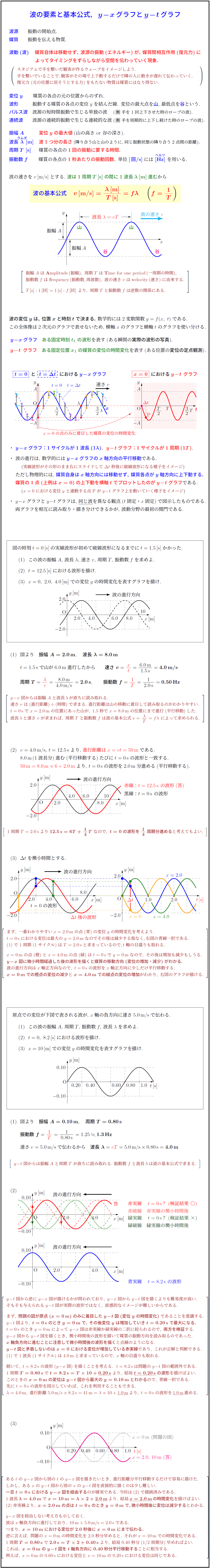 y-xグラフとy-tグラフは, 同じ波を異なる観点(t固定・x固定)で図示したものである.